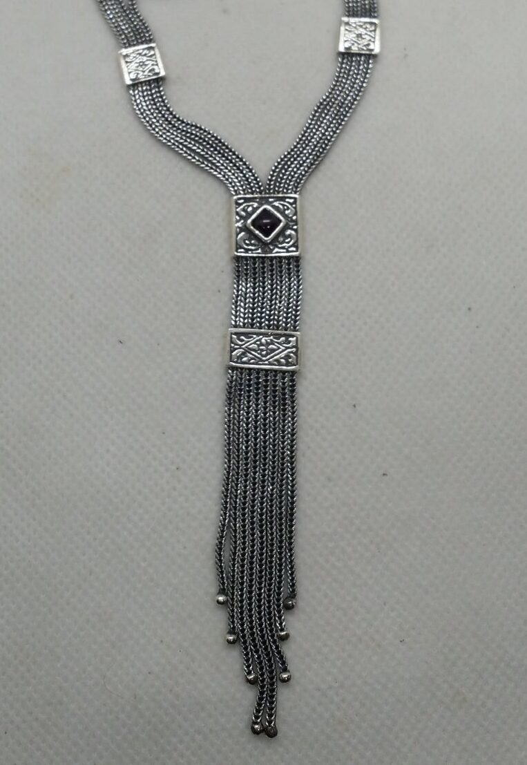 Χειροποίητο μενταγιόν παραδοσιακής γιαννιώτικης τέχνης απο ασήμι 925.Σκαλιστό στο χέρι οξειδωμένο με την παραδοσιακή τέχνη της οξείδωσης για να παραμένει αναλλοίωτο στο χρόνο.Ενα αλυσιδωτό κόσμημα φιλοτεχνημένο με σκαλιστά μοτίφ ενδιάμεσα και διασκομημένο με ρουμπινογρανάδα.