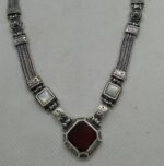 Χειροποίητο μενταγιόν παραδοσιακής γιαννιώτικης τέχνης απο ασήμι 925.Σκαλιστό στο χέρι οξειδωμένο με την παραδοσιακή τέχνη της οξείδωσης για να παραμένει αναλλοίωτο στο χρόνο.Ενα αλυσιδωτό κόσμημα φιλοτεχνημένο με σκαλιστά μοτίφ ενδιάμεσα και διακοσμημένο με δύο φίλντισι και μία αχάτη διαστάσεων 1.3*1.3 cm.