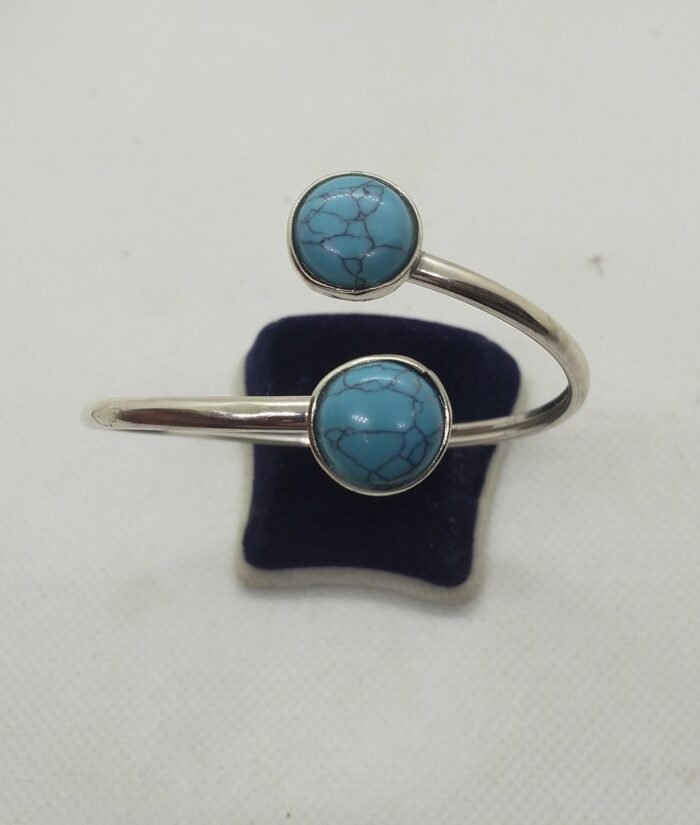 Πρόκειται για ένα χειροποίητο βραχιόλι από ασήμι 925 διακοσμημένο με ορυκτές πέτρες. Η βάση του βραχιολιού έχει ελαστικότητα ώστε να προσαρμόζεται στο χέρι σας. Στο συγκεκριμένο οι πέτρες είναι τυρκουάζ.