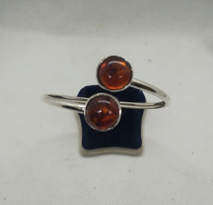 Πρόκειται για ένα χειροποίητο βραχιόλι από ασήμι 925 διακοσμημένο με ορυκτές πέτρες. Η βάση του βραχιολιού έχει ελαστικότητα ώστε να προσαρμόζεται στο χέρι σας. Στο συγκεκριμένο οι πέτρες είναι κεχριμπάρι.