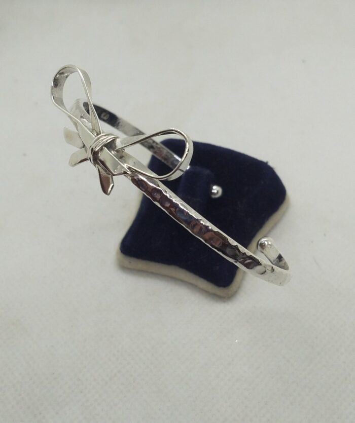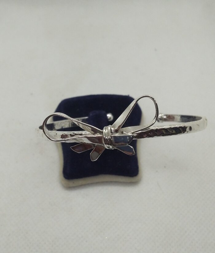 Ασημένιο χειροποίητο βραχιόλι σφυρήλατο με φιόγκο.